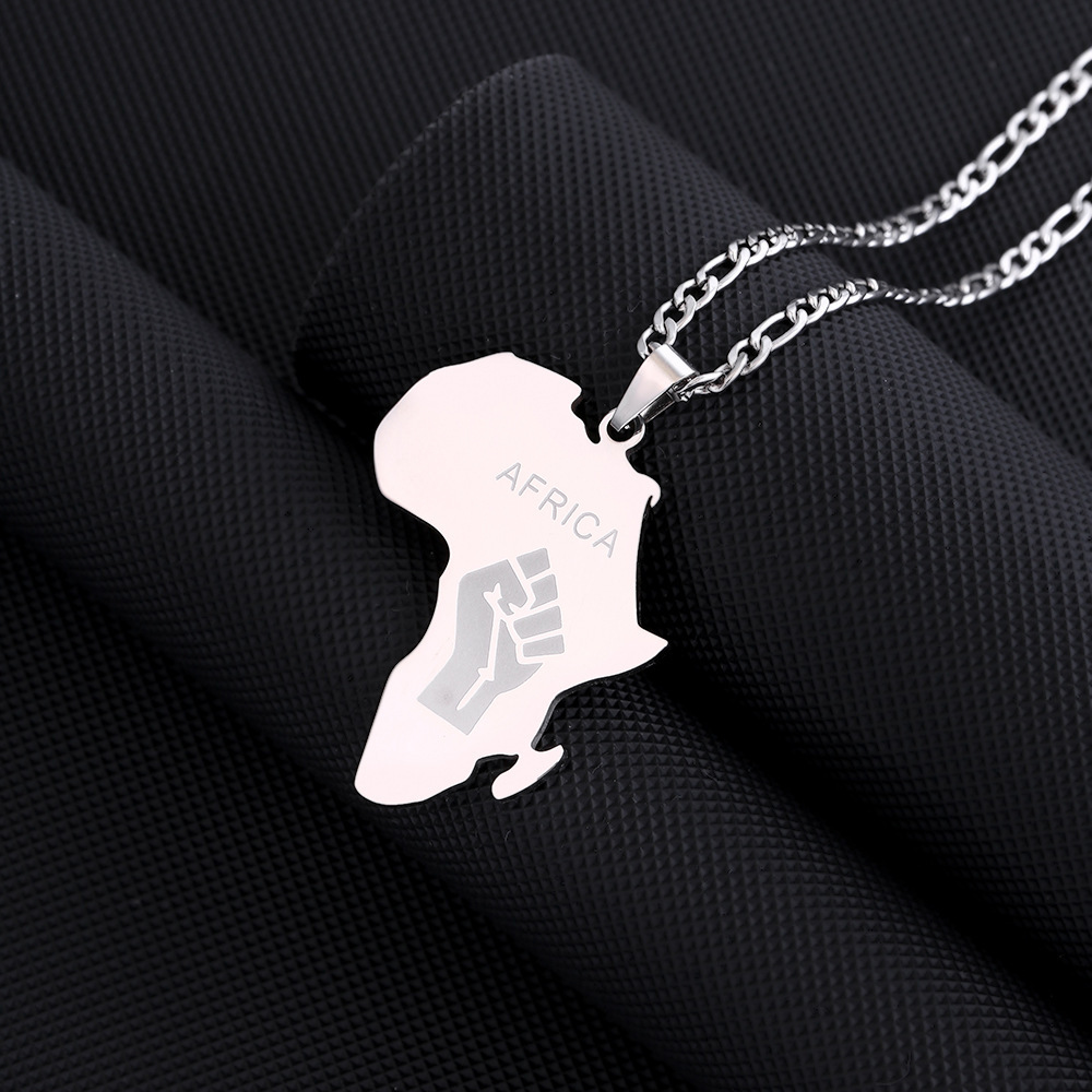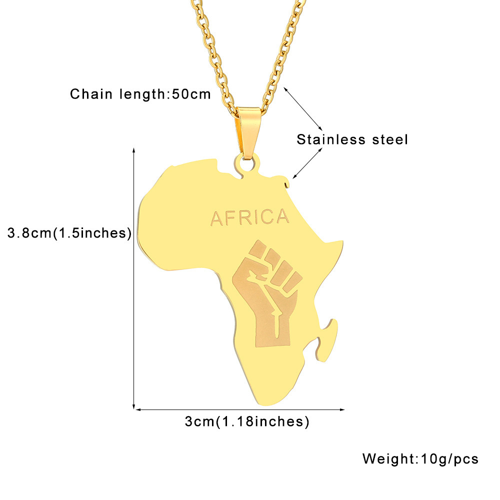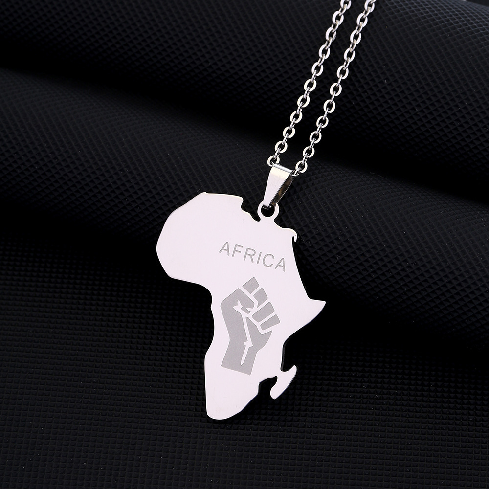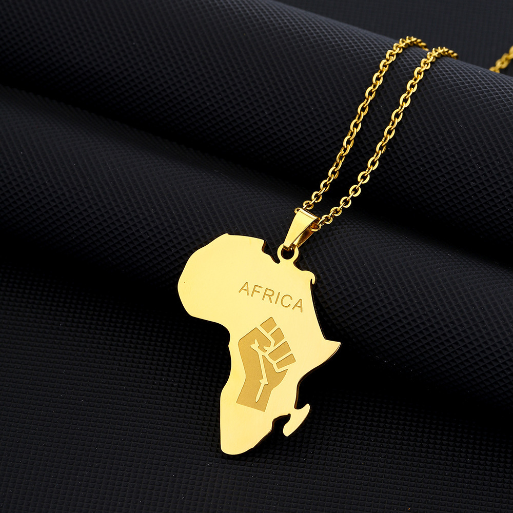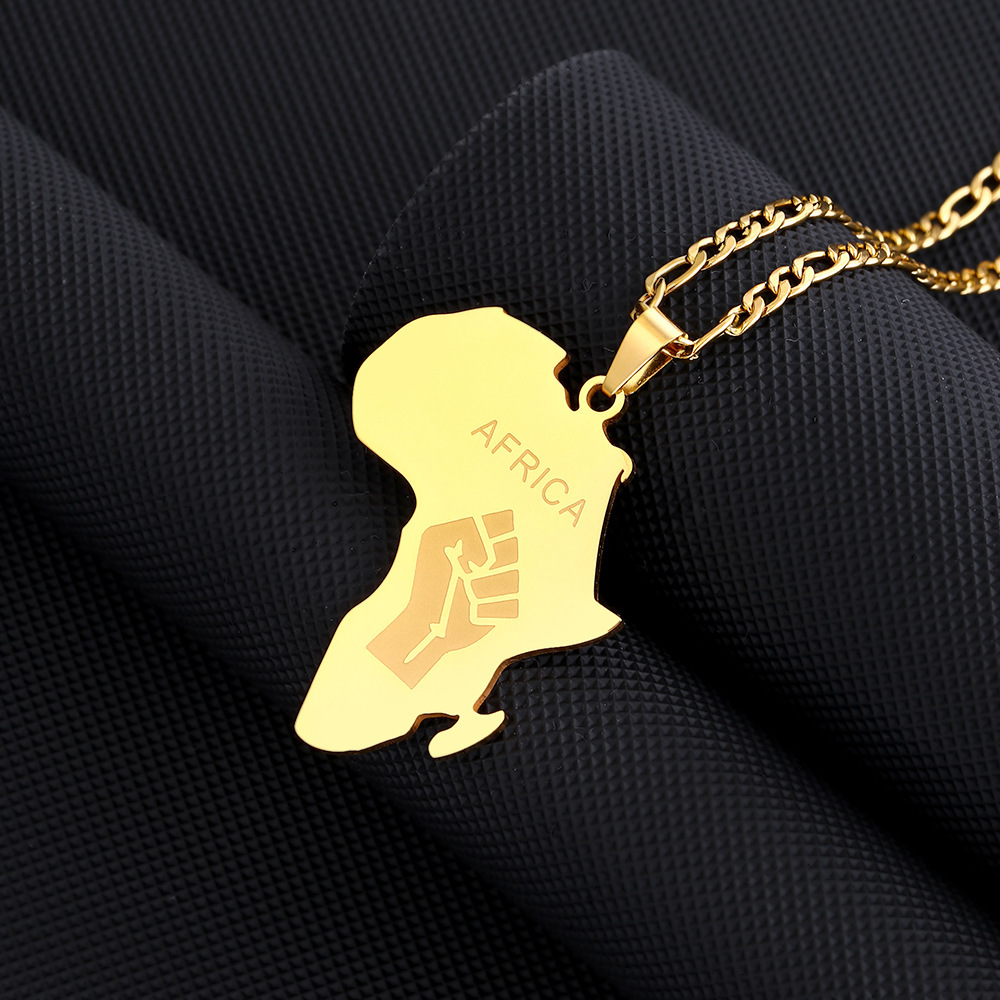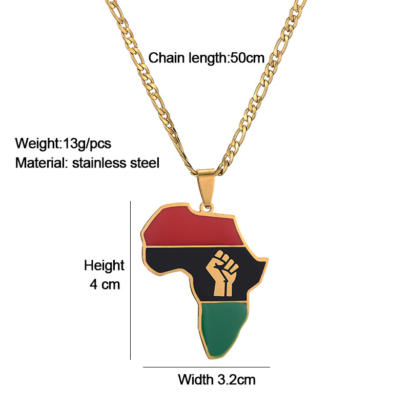 Ethnic Design: Features African-inspired city name and fist pendant motifs, showcasing cultural style.
